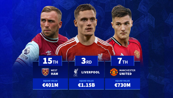 อย่างไรก็ตามทีมของเฮดโค้ช สกอตต์ พาร์คเกอร์ ยังคงมีมูลค่าน้อยที่สุดในลีก 274 ล้านยูโร คิดเป็น 9.3% เพิ่มจากเดิม