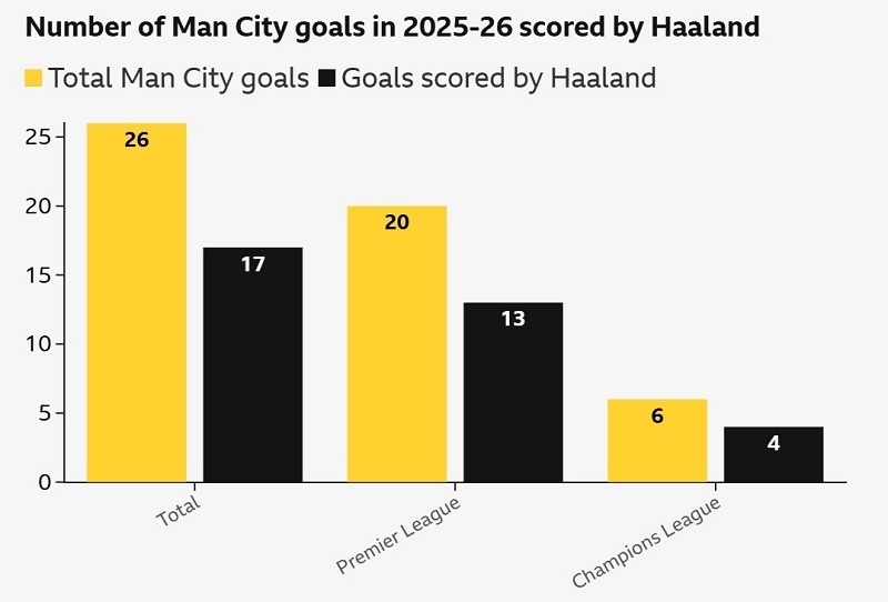 มีการพูดถึงกันมากเกี่ยวกับการที่ ซิตี้ พึ่งพา ฮาแลนด์ มากเกินไป และความจำเป็นที่ผู้เล่นคนอื่นต้อง 'ก้าวขึ้นมา' และทำประตูให้ได้มากขึ้น