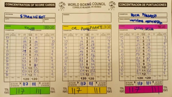 ผลลัพธ์คือ: คะแนนรวมมักจะกระจุกตัวอยู่ที่ 115–113 หรือ 116–112 ซึ่งสะท้อนให้เห็นว่าการแข่งขันมีความสูสีมากกว่าการชกที่ฝ่ายหนึ่งถูกทำลายอย่างสิ้นเชิง