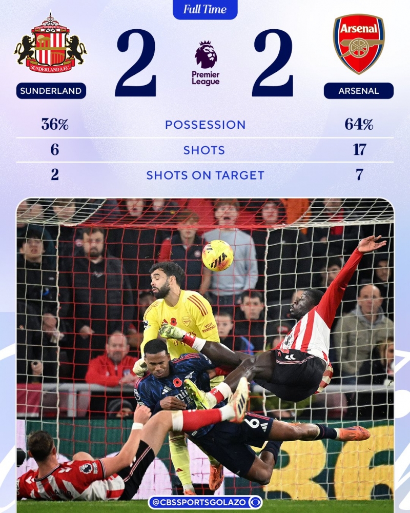 ซันเดอร์แลนด์กลายเป็นน้องใหม่ทีมแรกที่แบ่งแต้มจากอาร์เซน่อลในรอบ 15 เกมลีก นับจากน็อตติ้งแฮม ฟอเรสต์ เมื่อพฤษภาคม 2023 (ชนะ 1-0)