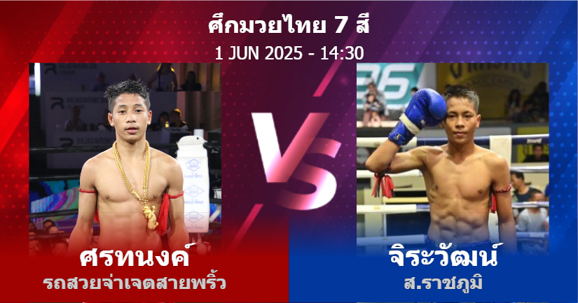01/06/2025 14:30 ศึกมวยไทย 7 สี ศรทนงค์ รถสวยจ่าเจตสายพริ้ว จิระวัฒน์ ส.ราชภูมิ