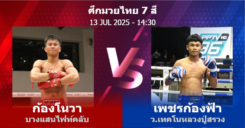 13/07/2025 14:30 ศึกมวยไทย 7 สี ก้องโนวา บางแสนไฟท์คลับ เพชรก้องฟ้า ว.เทคโนหลวงปู่สรวง