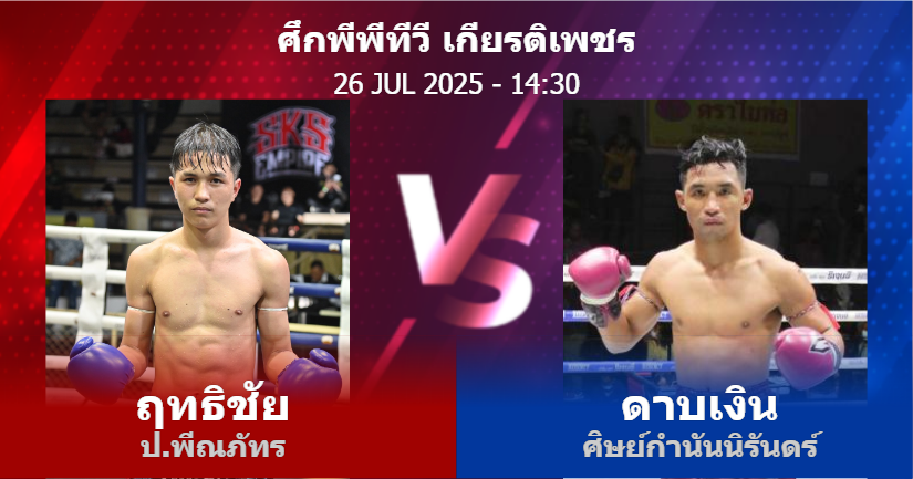 26/07/2568 14:30 น. ศึกพีพีทีวี เกียรติเพชร ฤทธิชัย ป.พีณภัทร ดาบเงิน ศิษย์กำนันนิรันดร์