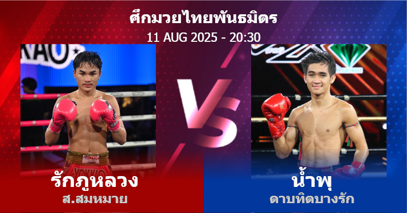 11/08/2025 20:30 ศึกมวยไทยพันธมิตร ช่วงที่ 2 รักภูหลวง ส.สมหมาย น้ำพุ ดาบทิตบางรัก