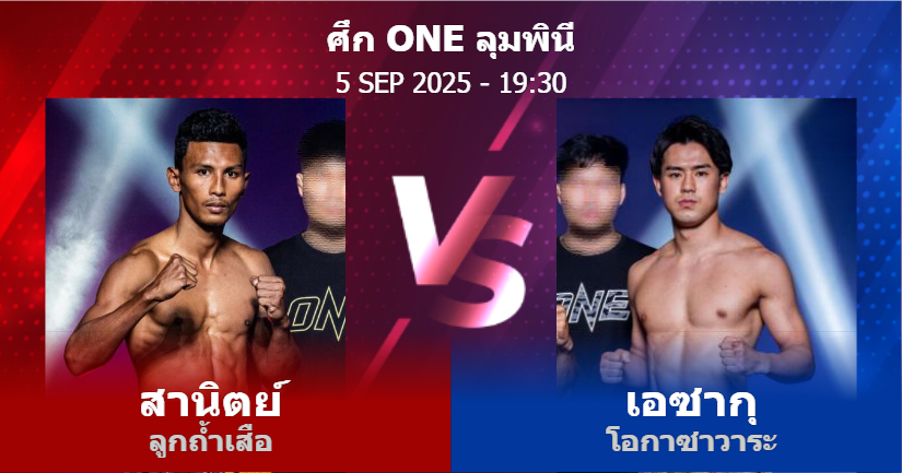 05/09/2025 19:30 ศึกวันแชมเปียนชิพลุมพินีมวยไทย 129 ป. สานิตย์ ลูกถ้ำเสือ เอซากุ โอกาซาวาระ