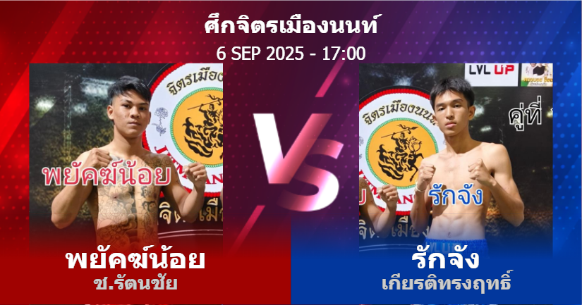 06/09/2025 17:00 ศึกจิตรเมืองนนท์ พยัคฆ์น้อย ช.รัตนชัย รักจัง เกียรติทรงฤทธิ์