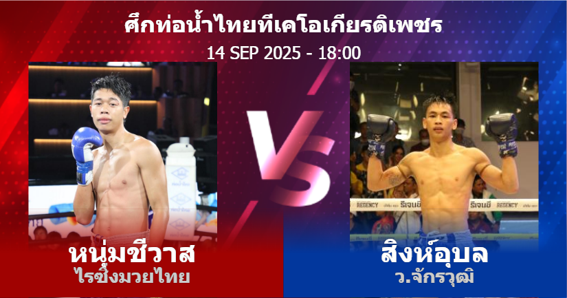 14/09/2025 18:00 ศึกท่อน้ำไทย TKO เกียรติเพชร หนุ่มชีวาส ไรซิ่งมวยไทย สิงห์อุบล ว.จักรวุฒิ