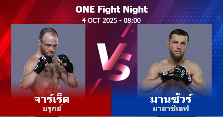04/10/2025 08:00 ศึกวันแชมเปียนชิพการต่อสู้แบบผสมผสาน รุ่นฟลายเวต จาร์เร็ด บรูกส์ มานซัวร์ มาลาชิเอฟ