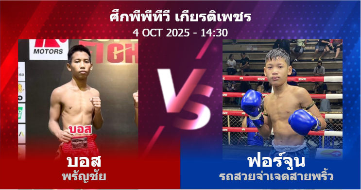 04/10/2025 14:30 ศึกมวยไทยเกียรติเพชร บอส พรัญชัย ฟอร์จูน รถสวยจ่าเจตสายพริ้ว