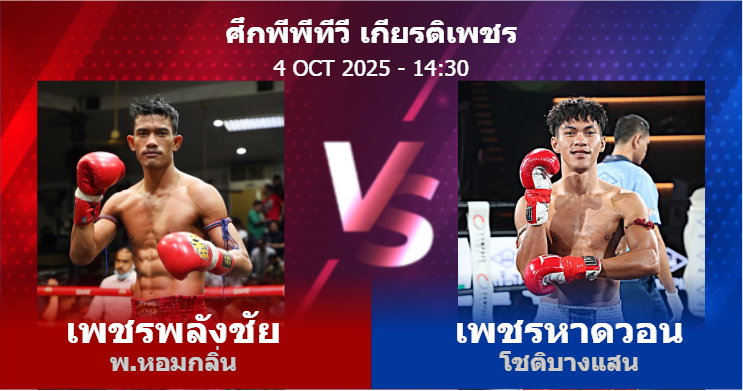 04/10/2025 14:30 ศึกมวยไทยเกียรติเพชร เพชรพลังชัย พ.หอมกลิ่น เพชรหาดวอน โชติบางแสน