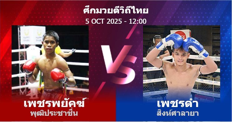 05/10/2025 12:00 ศึกมวยดีวิถีไทย เพชรพยัคฆ์ พุฒิประชาชื่น เพชรดำ สิงห์ศาลายา