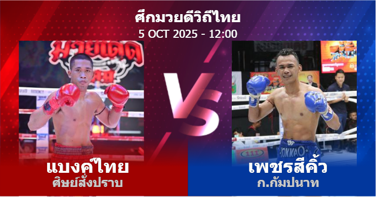 05/10/2025 12:00 ศึกมวยดีวิถีไทย แบงค์ไทย ศิษย์สั่งปราบ เพชรสีคิ้ว ก.กัมปนาท
