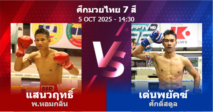 05/10/2025 14:30 ศึกมวยไทย 7 สี แสนวฤทธิ์ พ.หอมกลิ่น เด่นพยัคฆ์ ศักดิ์สตูล
