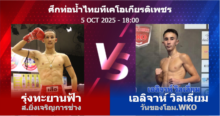 05/10/2025 18:00 ศึกท่อน้ำไทย TKO เกียรติเพชร รุ่งทะยานฟ้า ส.ยิ่งเจริญการช่าง เอลิจาห์ วิลเลี่ยม วันของโอม.WKO