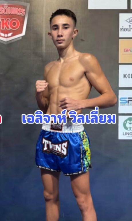เอลิจาห์ วิลเลี่ยม วันของโอม.WKO  มวยเข่าขวางหน้าปล้ำตีแข็งแกร่งเดินติดๆดีมีหมัดศอกแจมตลอด จะชนะ รุ่งทะยานฟ้า ส.ยิ่งเจริญการช่าง
