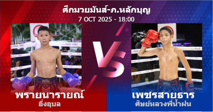 07/10/2025 18:00 ศึกมวยมันส์สนั่นเมือง พรายนารายณ์ อึ่งอุบล เพชรสายธาร ศิษย์หลวงพี่น้ำฝน