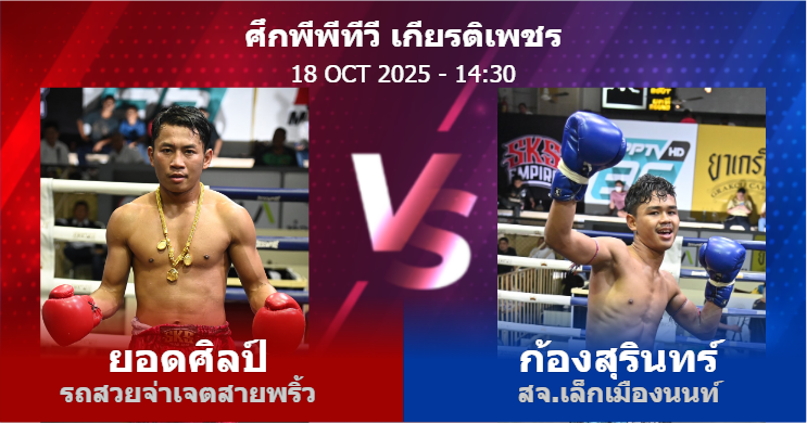 18/10/2025 14:30 ศึกมวยไทยเกียรติเพชร ยอดศิลป์ รถสวยจ่าเจตสายพริ้ว ก้องสุรินทร์ สจ.เล็กเมืองนนท์