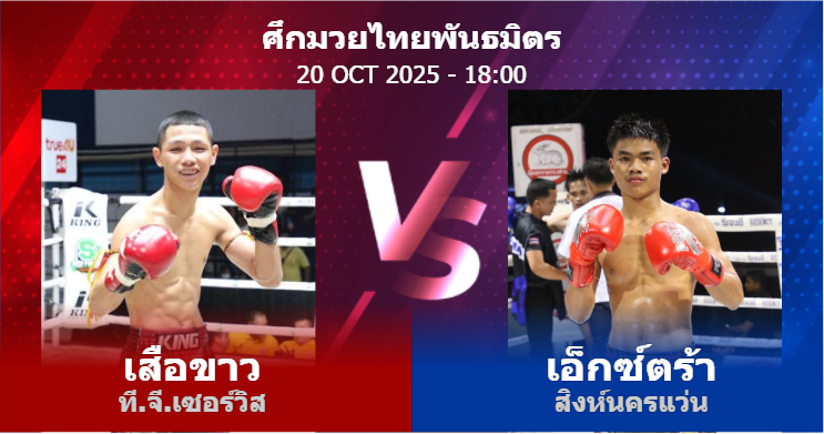 20/10/2025 18:00 ศึกมวยไทยพันธมิตร เสือขาว ที.จี.เซอร์วิส เอ็กซ์ตร้า สิงห์นครแว่น