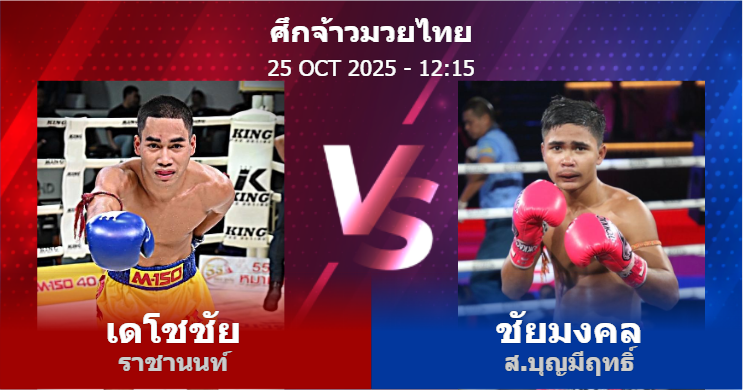 25/10/2025 12:15 ศึกจ้าวมวยไทย เดโชชัย ราชานนท์ ชัยมงคล ส.บุญมีฤทธิ์