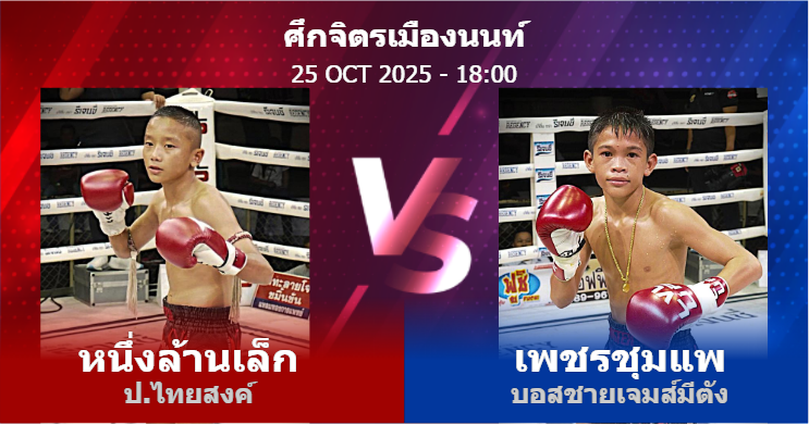 25/10/2025 16:30 ศึกจิตรเมืองนนท์ หนึ่งล้านเล็ก ป.ไทยสงค์ เพชรชุมแพ บอสชายเจมส์มีตัง