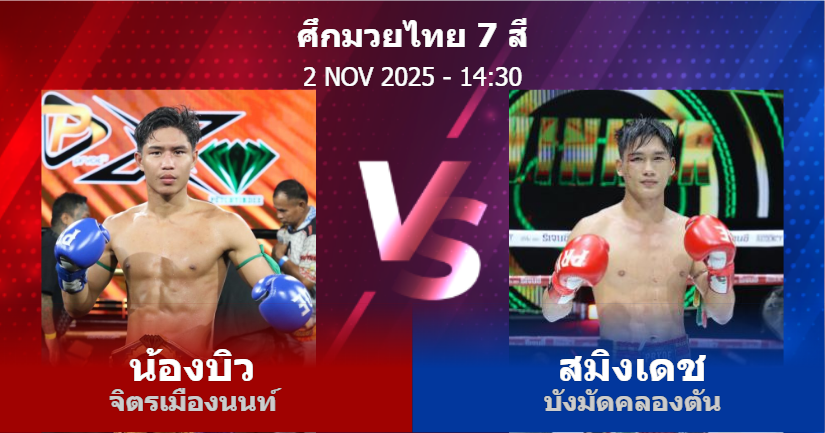 02/11/2025 14:30 ศึกมวยไทย 7 สี น้องบิว จิตรเมืองนนท์ สมิงเดช บังมัดคลองตัน