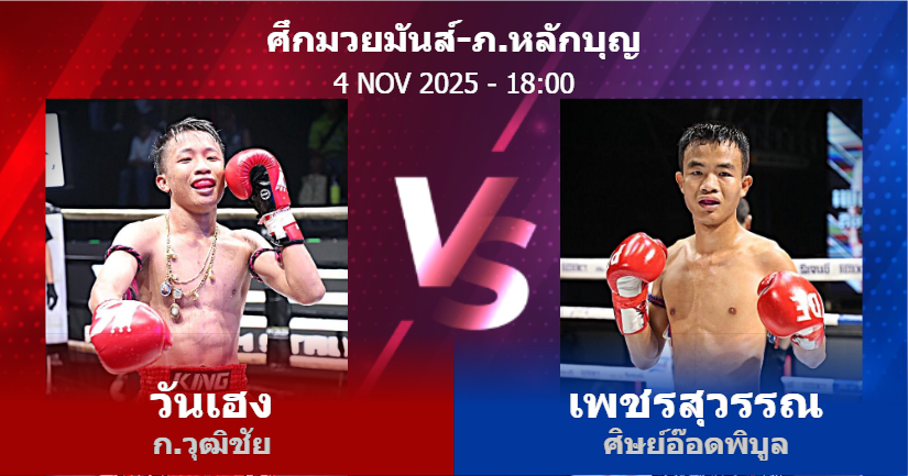 04/11/2025 18:00 ศึกมวยมันส์สนั่นเมือง วันเฮง ก.วุฒิชัย เพชรสุวรรณ ศิษย์อ๊อดพิบูล