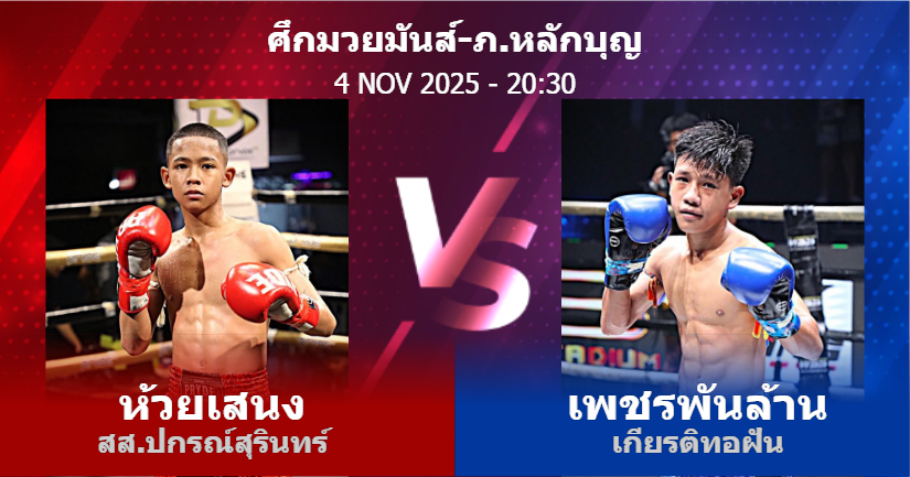 04/11/2025 20:30 ศึกมวยมันส์สนั่นเมือง ช่วงที่ 2 ห้วยเสนง สส.ปกรณ์สุรินทร์ เพชรพันล้าน เกียรติทอฝัน