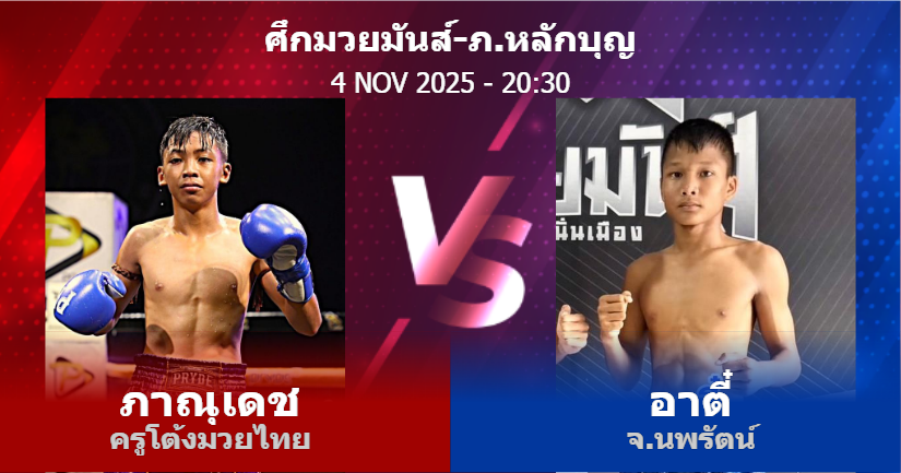 04/11/2025 20:30 ศึกมวยมันส์สนั่นเมือง ช่วงที่ 2 ภาณุเดช ครูโต้งมวยไทย อาตี๋ จ.นพรัตน์