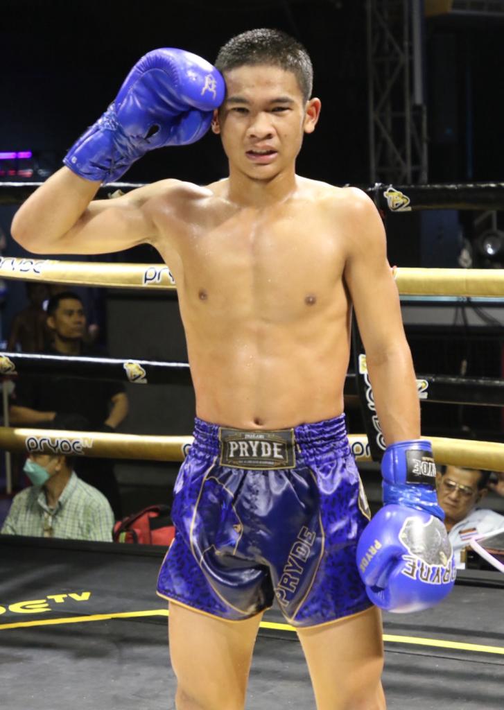 เขตตะวัน มกช.สุพรรณบุรี มวยจังหวะฝีมือเปิดเกมส์อาวุธรุนแรง ฟอร์มหลังสดขึ้นมา จะชนะ เพชรอั่งเปา ศิษย์หลวงพี่น้ำฝน  มวยขวาเปิดเกมต่อยหมัดฟันศอกคว้าคอล็อกรัดตีเหนียวแน่นตัวเล็กเสียดสีเป็นรอง