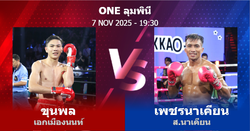 07/11/2025 19:30 ศึกวันแชมเปียนชิพลุมพินีมวยไทย รุ่นฟลายเวต ขุนพล เอกเมืองนนท์ เพชรนาเคียน ส.นาเคียน