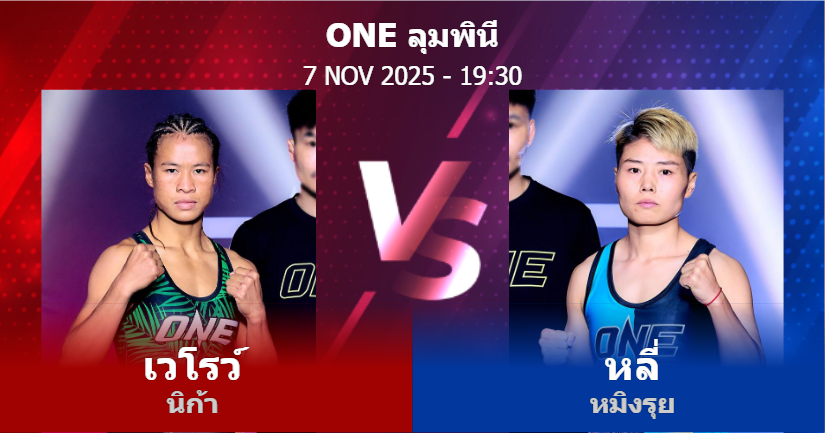07/11/2025 19:30 ศึกวันแชมเปียนชิพลุมพินีมวยไทย รุ่นอะตอมเวต เวโรว์ นิก้า หลี่ หมิงรุย