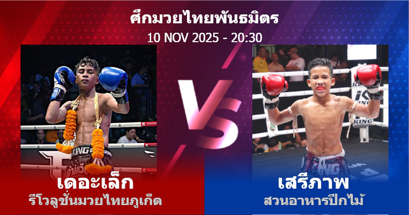 10/11/2025 20:30 ศึกมวยไทยพันธมิตร ช่วงที่ 2 เดอะเล็ก รีโวลูชั่นมวยไทยภูเก็ต เสรีภาพ สวนอาหารปีกไม้