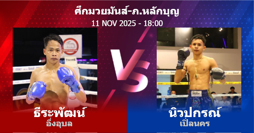 11/11/2025 18:00 ศึกมวยมันส์สนั่นเมือง ธีระพัฒน์ อึ่งอุบล นิวปกรณ์ เปิ่ลนคร