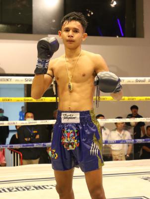 นิวปกรณ์ เปิ่ลนคร  มวยฝีมือเตะต่อยแรงศอกคมได้ลุ้นตลอด จะชนะ ธีระพัฒน์ อึ่งอุบล  มวยขวาฝีมือครบเครื่อง กระดูกเป็นรอง