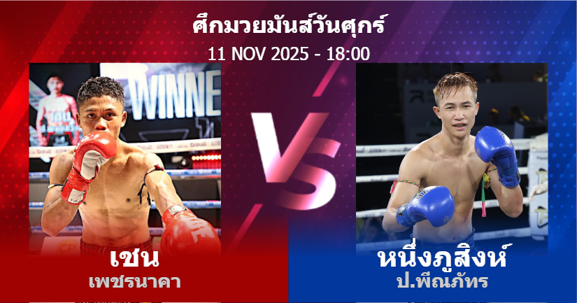 11/11/2025 18:00 ศึกมวยมันส์สนั่นเมือง เชน เพชรนาคา หนึ่งภูสิงห์ ป.พีณภัทร