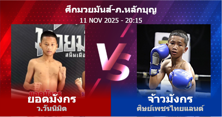11/11/2025 20:15 ศึกมวยมันส์สนั่นเมือง ช่วงที่ 2 ยอดมังกร ว.วันนิมิต จ้าวมังกร ศิษย์เพชรไทยแลนด์