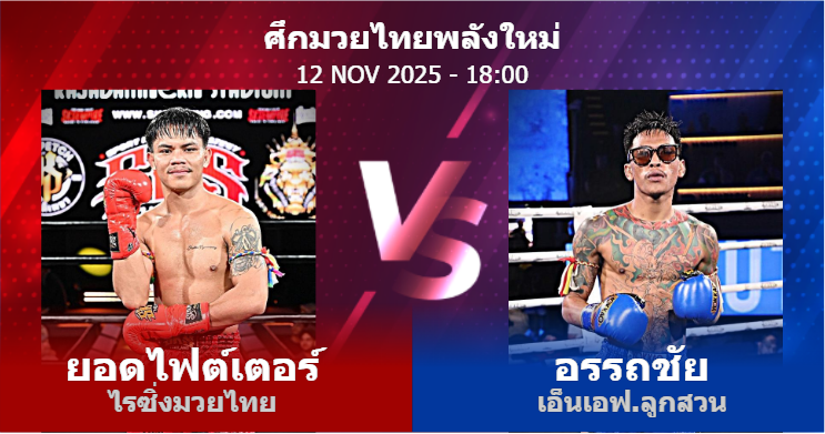 12/11/2025 18:00 ศึกมวยไทยพลังใหม่ ยอดไฟต์เตอร์ ไรซิ่งมวยไทย อรรถชัย เอ็นเอฟ.ลูกสวน