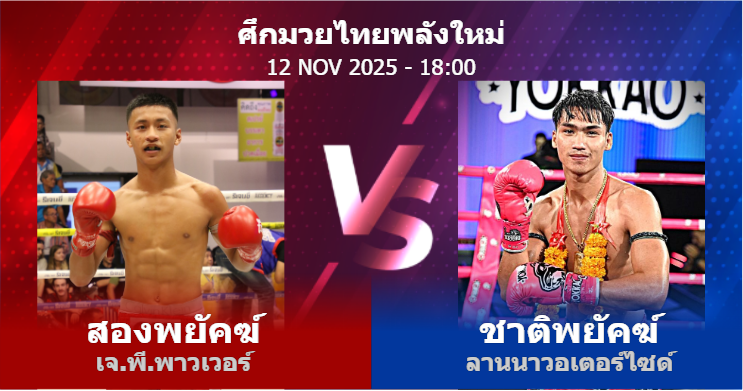12/11/2025 18:00 ศึกมวยไทยพลังใหม่ สองพยัคฆ์ เจ.พี.พาวเวอร์ ชาติพยัคฆ์ ลานนาวอเตอร์ไซด์