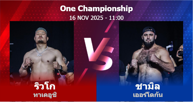 16/11/2025 11:00 ศึกวันแชมเปียนชิพการต่อสู้แบบผสมผสาน รุ่นเฮฟวีเวต ริวโก ทาเคอูชิ ชามิล เออร์โดกัน