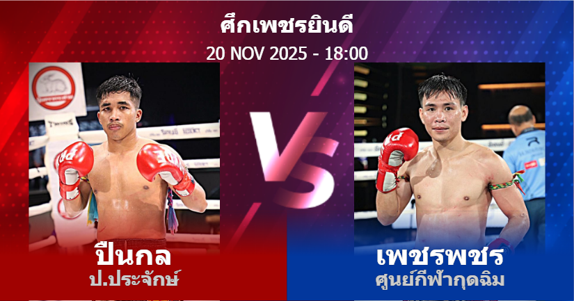 20/11/2025 18:00 ศึกเพชรยินดี ปืนกล ป.ประจักษ์ เพชรพชร ศูนย์กีฬากุดฉิม