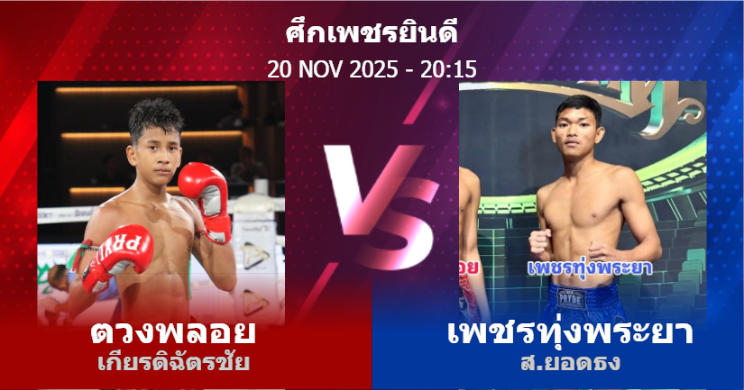20/11/2025 20:15 ศึกเพชรยินดี ช่วงที่ 2 ตวงพลอย เกียรติฉัตรชัย เพชรทุ่งพระยา ส.ยอดธง