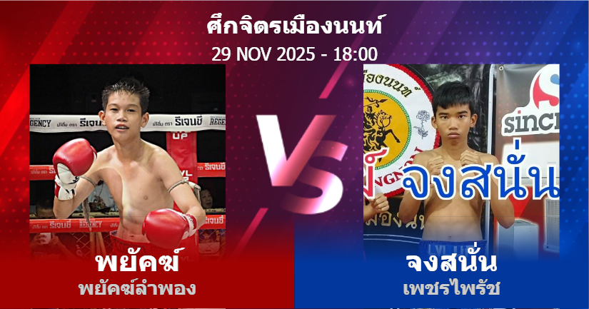 11/04/2025 14:00 ศึกดาวรุ่งจิตรเมืองนนท์ โกไลแอท อ.อู๊ดอุดร ชนะคะแนน พยัคฆ์ พยัคฆ์ลำพอง