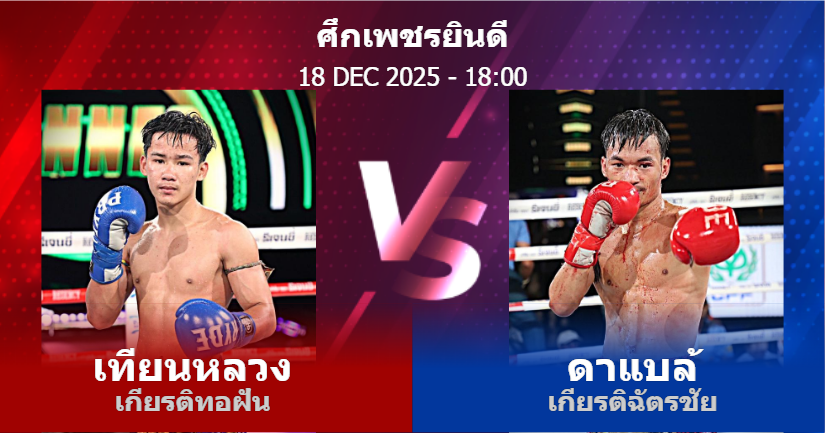 18/12/2025 18:00 ศึกเพชรยินดี เทียนหลวง เกียรติทอฝัน ดาแบล้ เกียรติฉัตรชัย