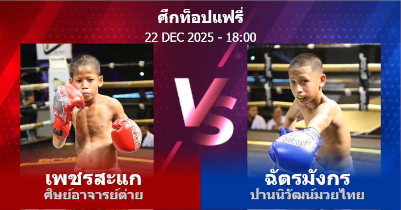 22/12/2025 17:00 ศึก ท๊อปแฟร์รี่ยิม เพชรสะแก ศิษย์อาจารย์ต่าย ฉัตรมังกร ปานนิวัฒน์มวยไทย