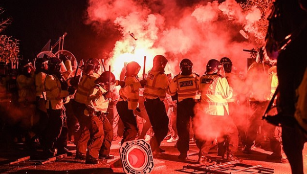 ขณะเดียวกันเจ้าหน้าที่ตำรวจมีการควบคุมชาย 46 คน จากเหตุการณ์ปะทะกัน โดยตำรวจมิดเวสต์เผยว่ามีเจ้าหน้าที่ 4 ราย ได้รับบาดเจ็บด้วย