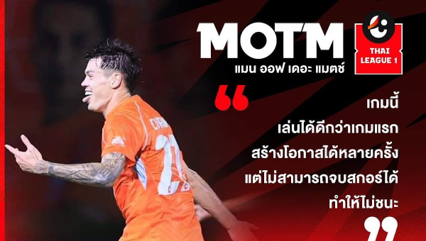 ​สถิติของ เจสซี่ เคอร์แรน แมนออฟเดอะแมตช์เกม Ratchaburi FC เสมอ Uthai Thani FC 1-1