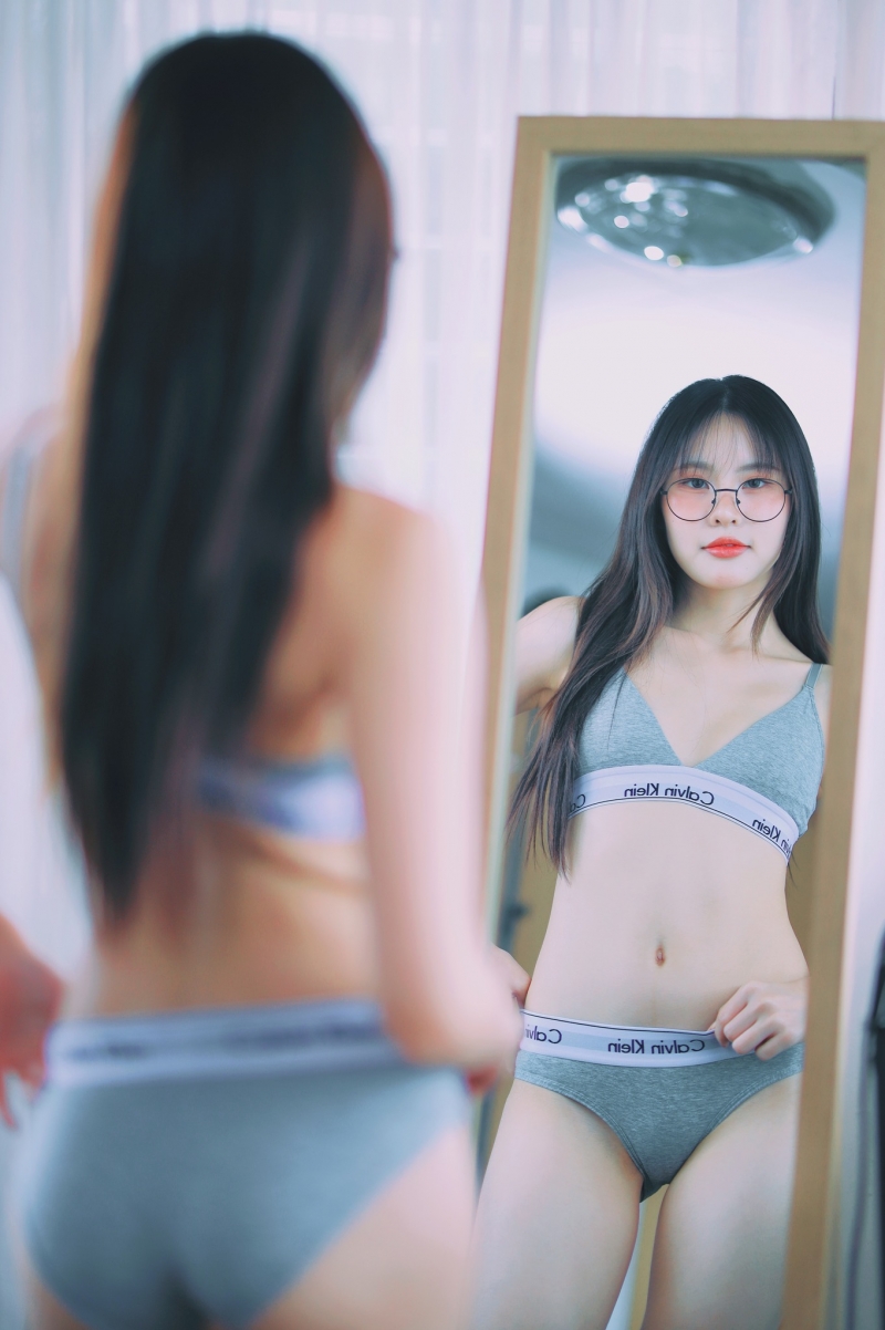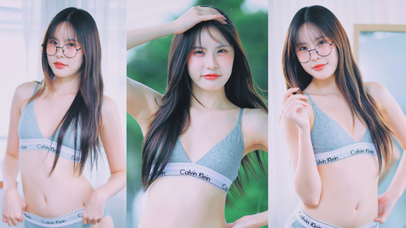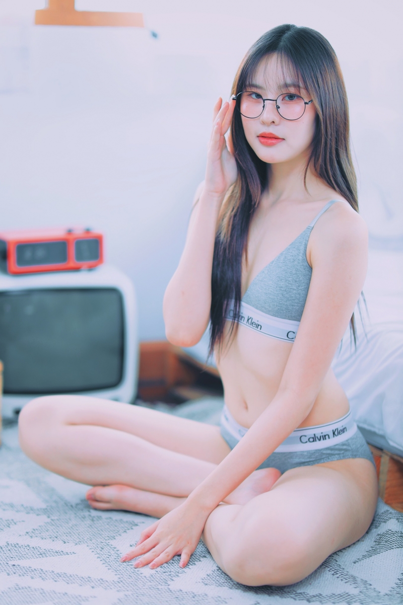 สาวแว่นหุ่นบางน่ารักมากับชุด CK Bra สีเทา เอาเรื่องเหมือนอย่างเคย