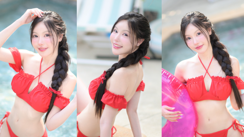 สาวน้อยชุดว่ายน้ำแดง สวยใสน่ารักยิ้มหวานมากสดชื่นสุดๆ