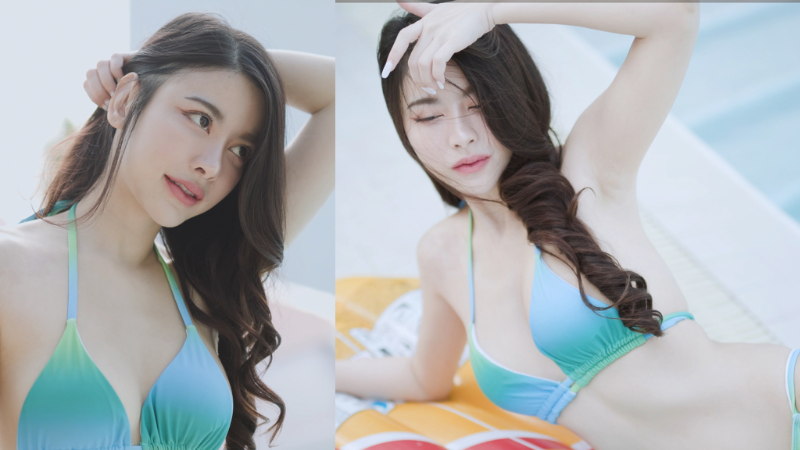 สาวสวยน่ารักกับชุดว่ายน้ำทูพีซสีฟ้าโทนเขียวดูแล้วสบายตา