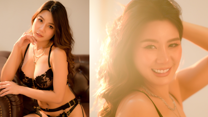 สาวสวยเซ็กส์ซี่กับชุดชั้นในลูกไม้สีดำ